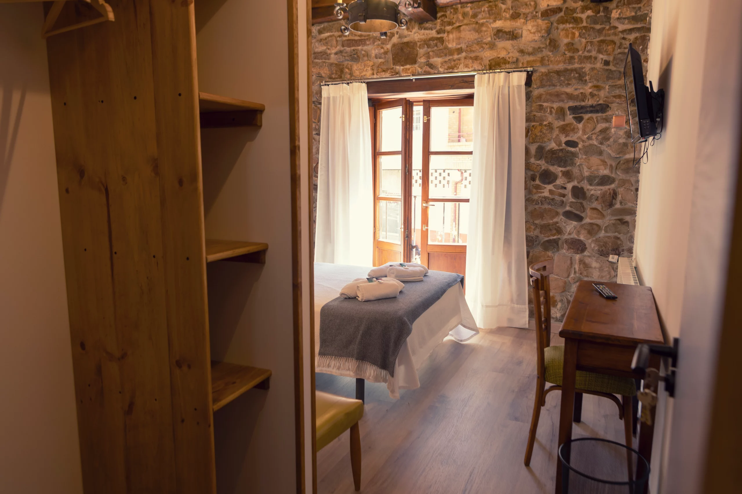 Encantadora habitación doble con baño privado, que combina techos en aguja, madera, piedra y elegantes lámparas de forja, todo con un toque moderno. Un espacio único que une tradición y confort contemporáneo.