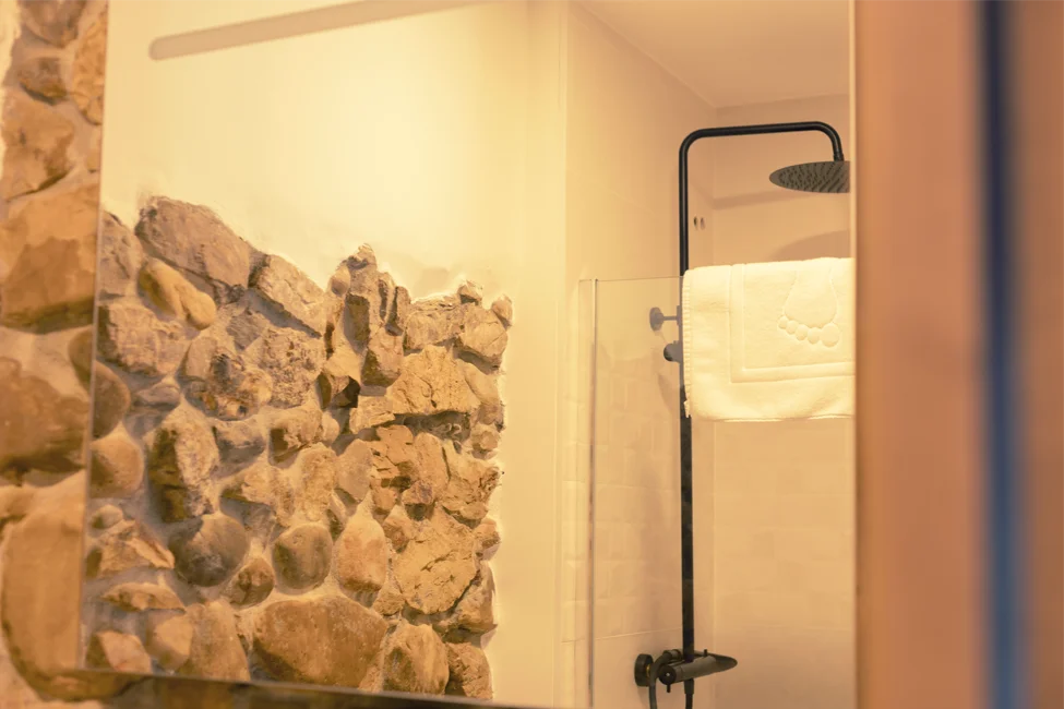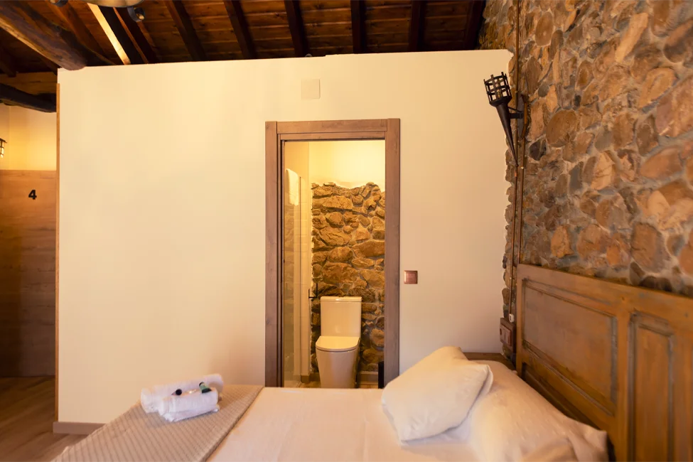 - Acogedora habitación doble con baño privado, que combina el encanto rústico de la madera y la piedra con un diseño moderno y funcional.Ideal para una estancia confortable en un entorno elegante y natural.